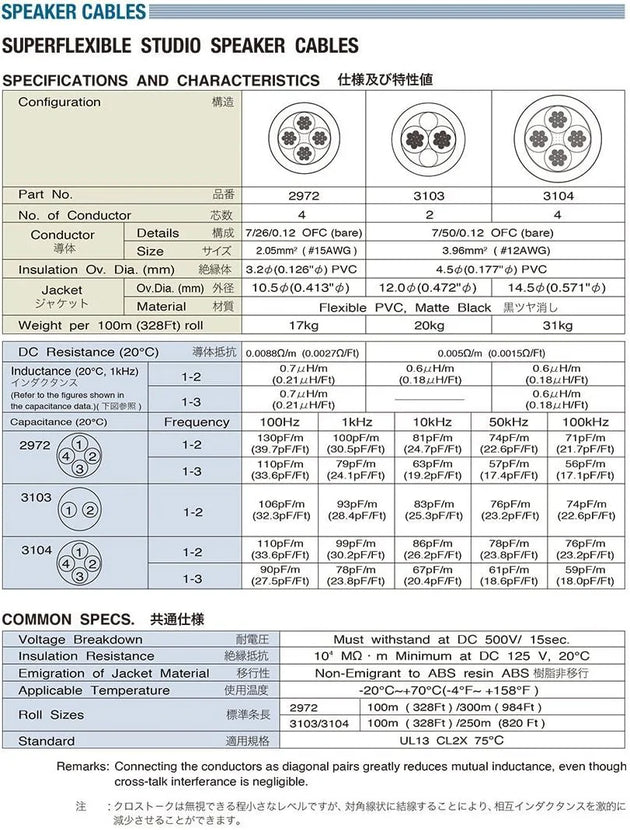 MOGAMI 3104 モガミ スピーカーケーブル m/切り売り (海外配送)