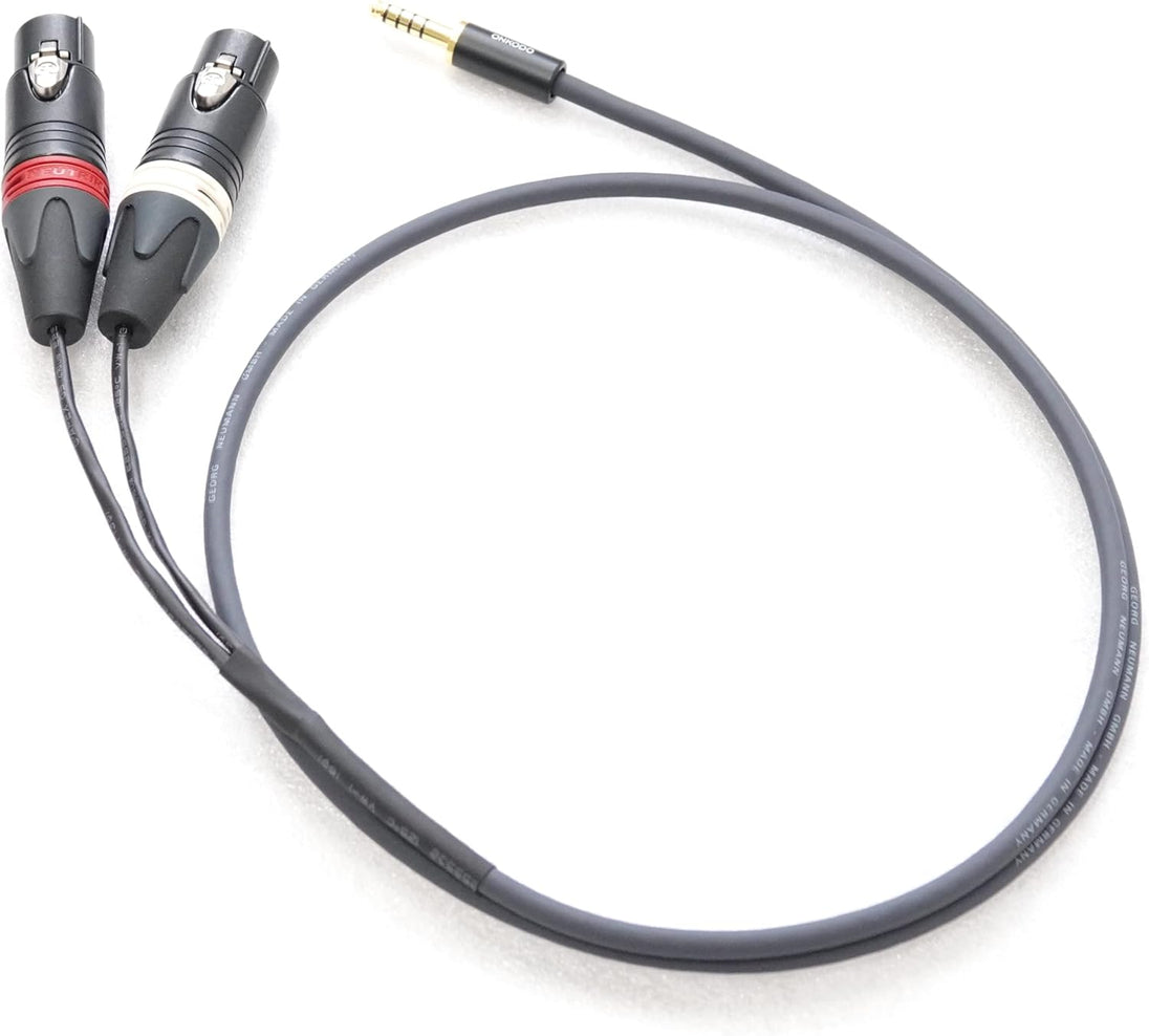 NEUMANN K5x0.14 ノイマンで4.4mm5極バランスフォン-XLRメス×2 Yケーブルを製作します。こちらのケーブルはハイグレードオーディオプレイヤーに搭載されている4.4mm5極をアンプに繋いで頂き、ご利用いただく場面で有効です。アマゾンでは4.4mmケーブルは中国製が多くを占めておりますがコンデンサーマイクの王様[NEUMANN]の高級ケーブルでぜひお試しください。